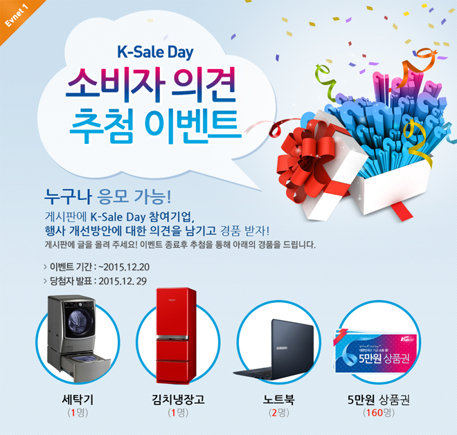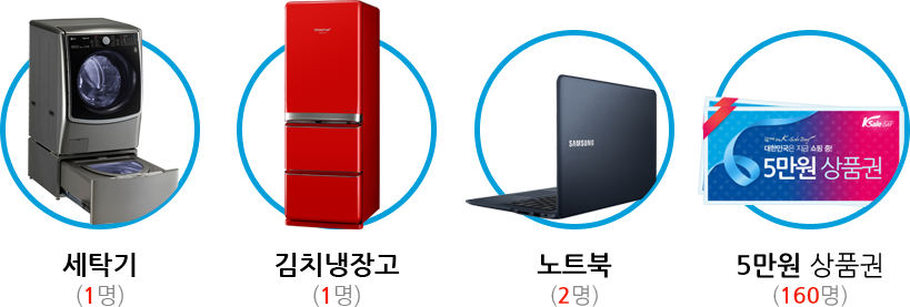 - 본 행사의 경품은 삼성전자, LG전자, 대유위니아, 롯데백화점, 현대백화점, 신세계백화점,