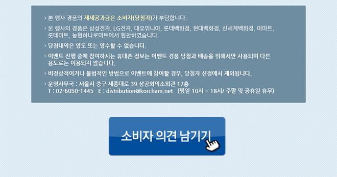 - 본 행사 경품의 제세공과금은 소비자(당첨자)가 부담합니다.
